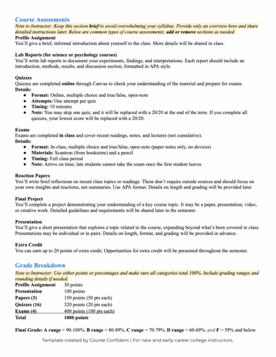 A ready-to-edit Google Doc you can customize with sample policies and grading.